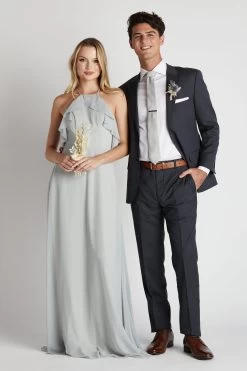 We call this an elevated classic. We love this handsome groomsmen suit from SuitShop for its goes-with-anything gray that’s perfect for a spring wedding. It lets your guys look sharp while providing a canvas to work in their personal touch (we think it looks especially snazzy with a pair of brown oxford or blucher shoes). The fully lined jacket has a notch lapel, flap pockets and a two-button closure, while the pants come with an unfinished hem and split waist construction for easy alteration and slant front pockets. Pair it with one of our skinny neck ties or bow ties for a matching look with the entire wedding party. *Fulfilled by our friends at SuitShop