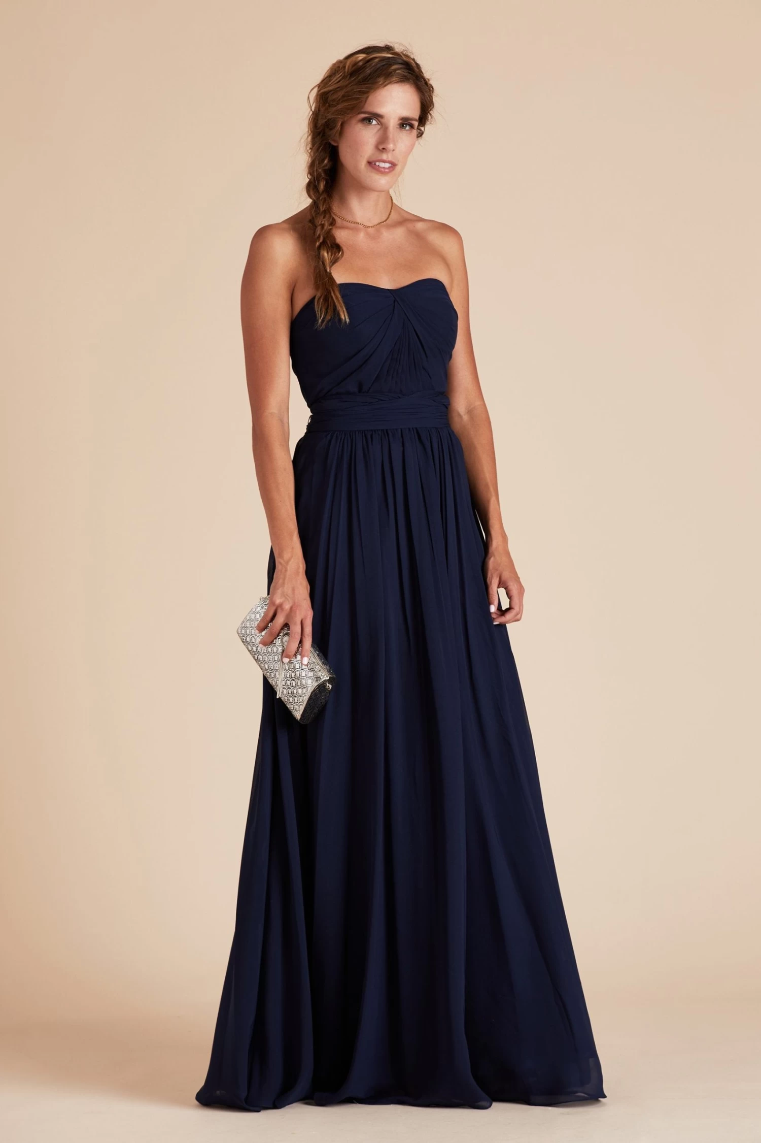 No two bridesmaids are alike and the Grace Convertible bridesmaid dress is your easiest solution for making the entire bridal squad happy—it’s no wonder why it’s our top-selling gown! Spun of airy chiffon, this multiwear bridesmaid dress comes with two long front streamers that you can tie in tons of different ways (halter, fluttery sleeves, off-the-shoulder—you name it). Plus, it features hidden pockets deep enough to hold your phone, tissues, and pins. Float down the aisle in this convertible bridesmaid dress that sways with your every movement.
